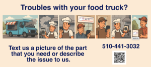 At U.S. Food Truck Mfg, we understand that your food truck is more than a vehicle, it’s your business. That’s why we make it easy for you to keep things running smoothly. Next time you’re stuck with a broken or mystery part, don’t stress. Snap a photo, send it our way, and let us handle the rest.